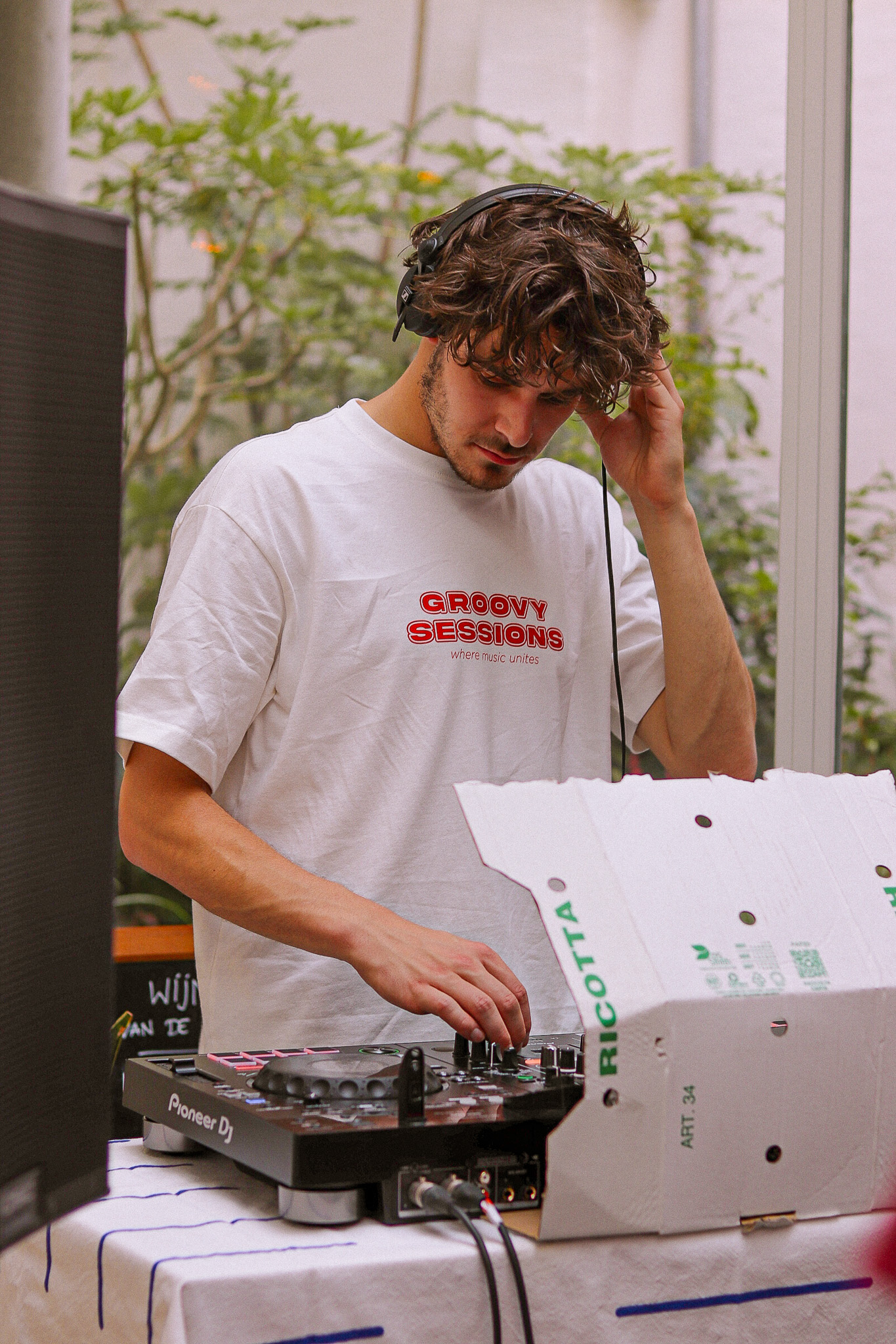 Maxim komt langs voor een vrijdagse sessie in onze tuin. Als gezicht achter Groovy Collective en Celsius Culture ademt hij de Gentse scene en weet hij precies welke platen er nodig zijn voor een goede middag.